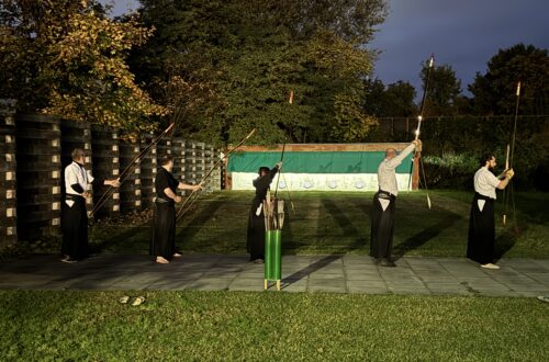 Neun Kyudoka aus allen drei Berliner Vereinen traten gegeneinander an. Die Kampfrichterin war Eléne Sieglen.